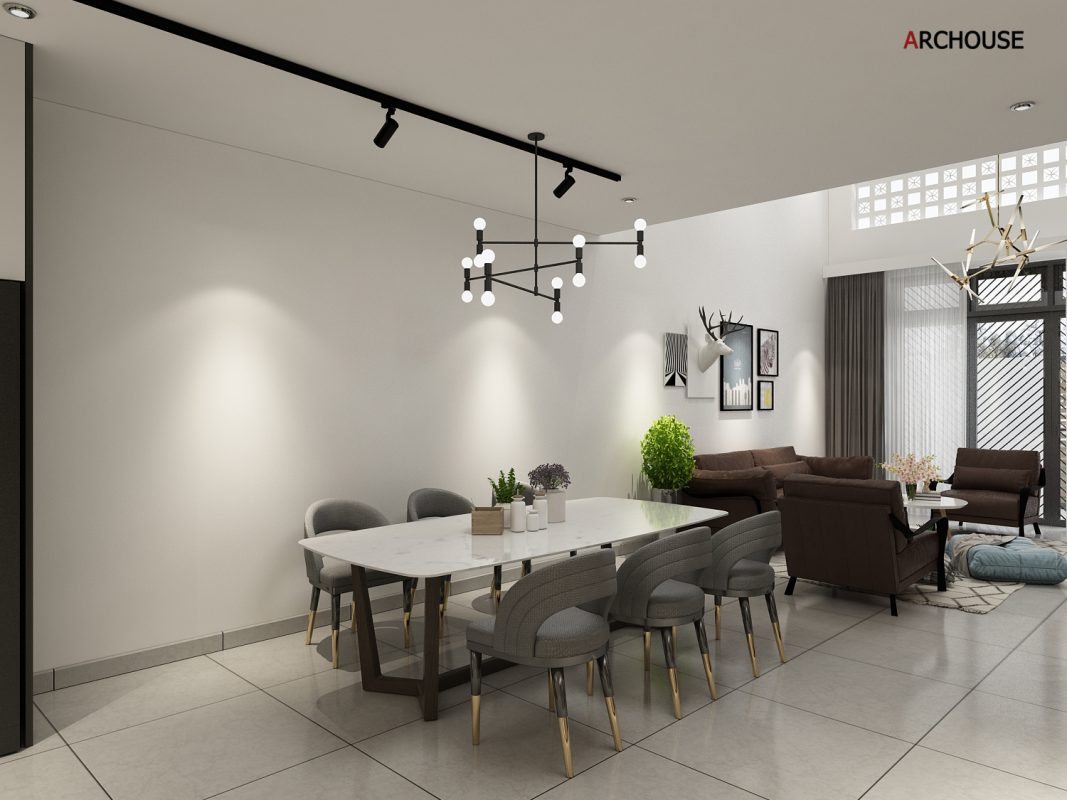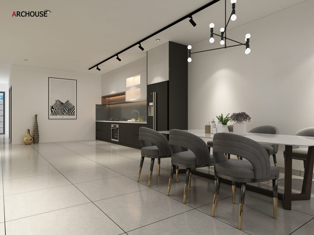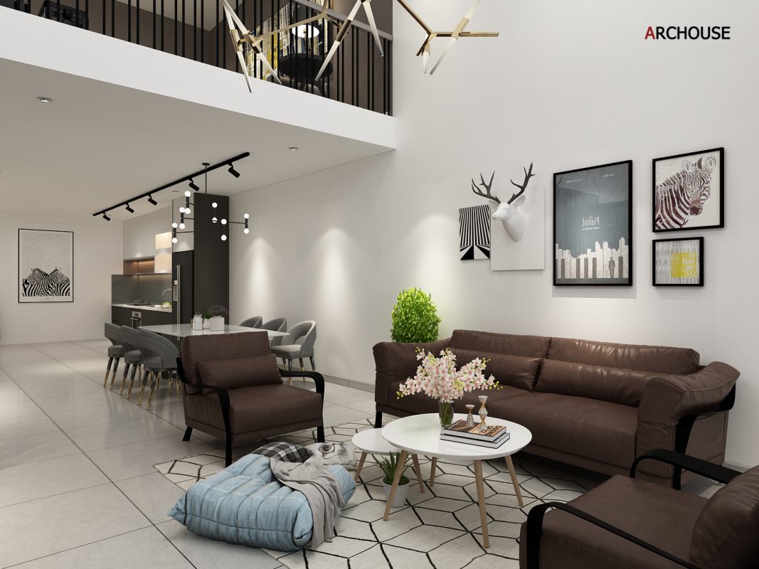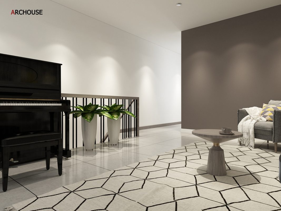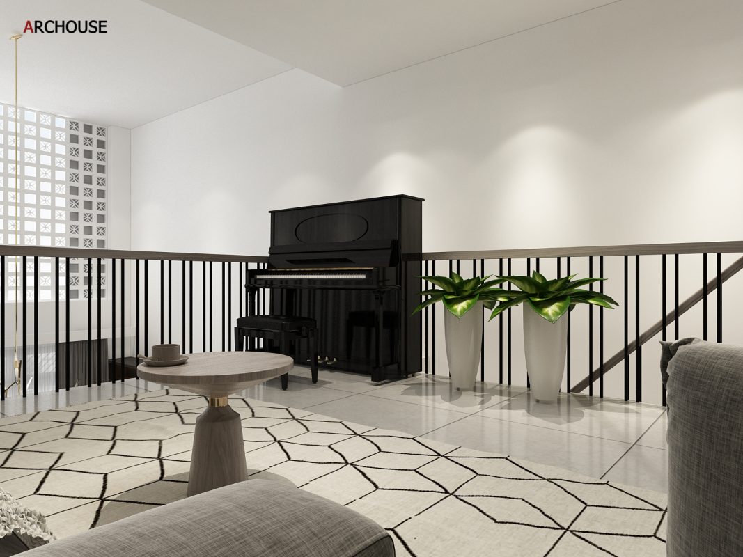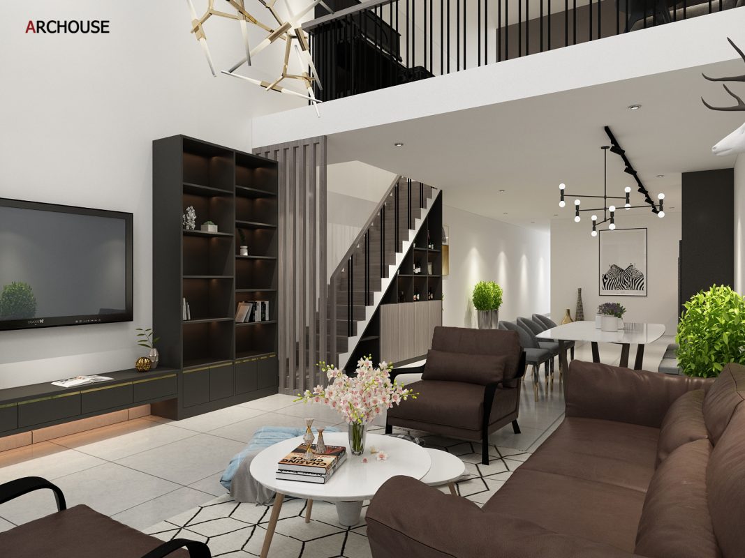 Diện tích 1 trệt + 1 tầng lửng, Phong cách hiện đại – Modern style.