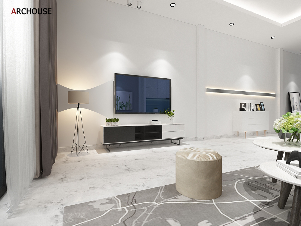 Diện tích 1 trệt + 3 lầu, Phong cách hiện đại – Modern style